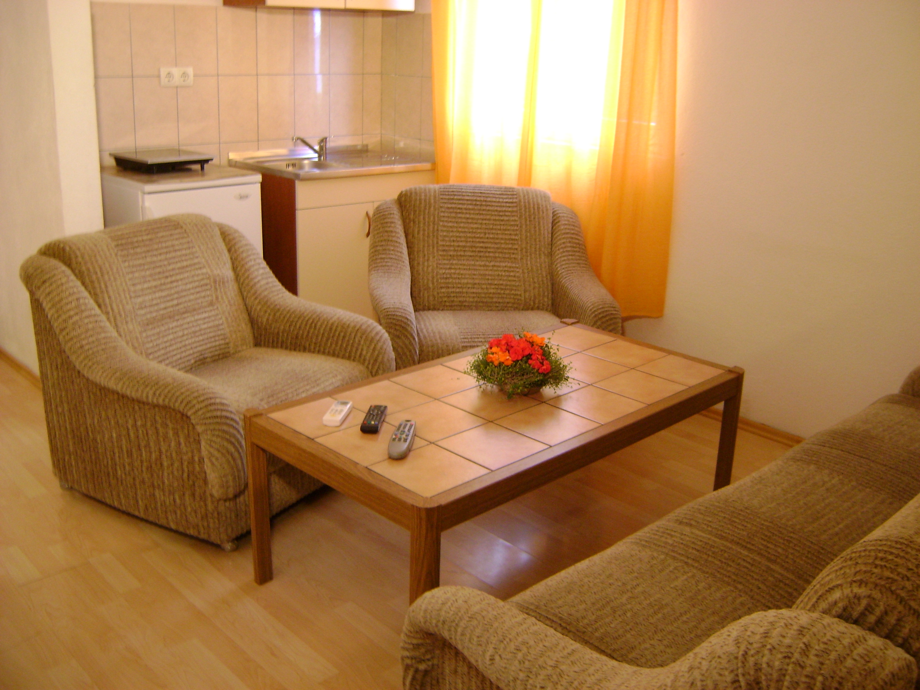 This apartment is 31m2+12m2 terassa. Apartment have 2 rooms( 2+2 beds), the kitchen, bathroom and big terassa with a beach view. Apartment have park place and air condition.